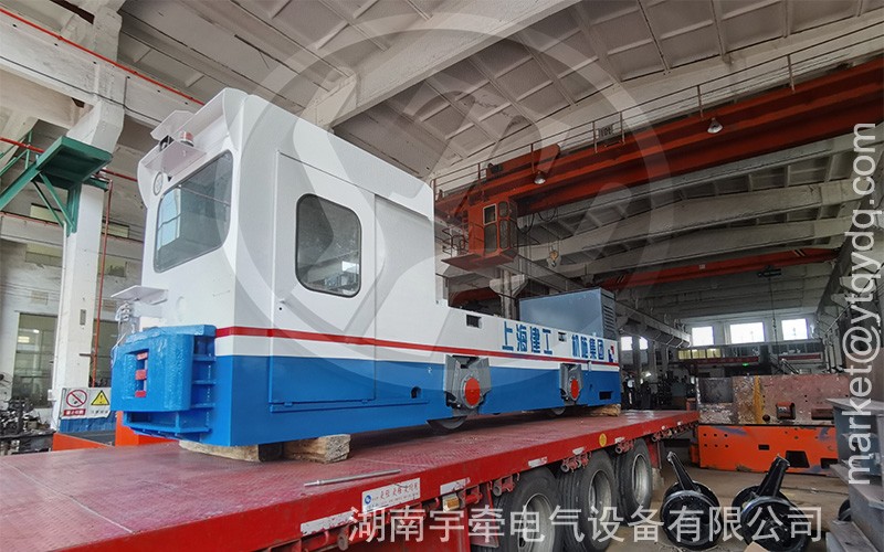 礦用25噸湘潭蓄電池電機(jī)車裝車發(fā)貨。